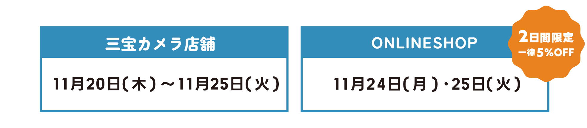 ● 三宝カメラ店舗とオンラインショップとで開催期間が異なります。